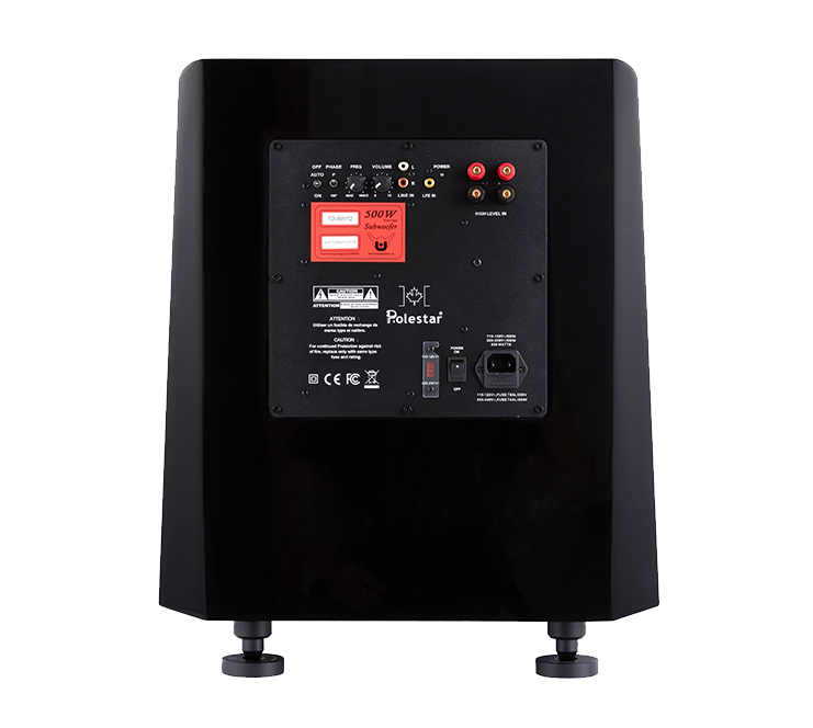The 500 Watt output Class D amplifier provides high efficiency and ample punch. The speaker cone, cabinet design and powerful amplifier all work in concert to provide an explosive and tightly controlled depth.